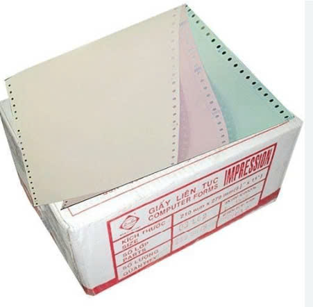 - Giấy màu Carbonless, liên tục đục lỗ, chuyên dùng cho máy in kim Epson